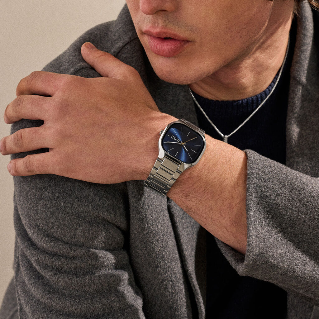 バルト海と北海が出会うスカーゲン半島を有するデンマークで生まれたスカーゲン。無駄のないシンプルなデザインと上品で華やかなカラーリングが特徴的です。美しい海に太陽が沈むと空と海が水平線でまじり合い、ミッドナイトブルーと天空の輝きが優しく世界を包み込む。そんな静かで壮大な自然を時計に落とし込んだミッドナイトブルーコレクションが登場しました。