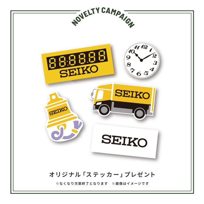 期間中セイコーの腕時計をお買上で、オリジナルステッカーをプレゼント。なくなり次第終了となりますので、お早めにご利用ください。