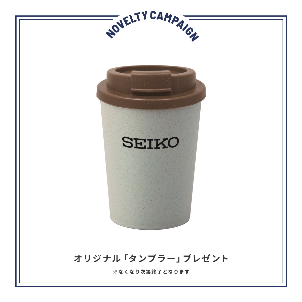 期間中セイコーセレクションの時計をお買い上げの方に、先着でオリジナルタンブラーをプレゼント。なくなり次第終了となりますので、お早めにご利用ください。