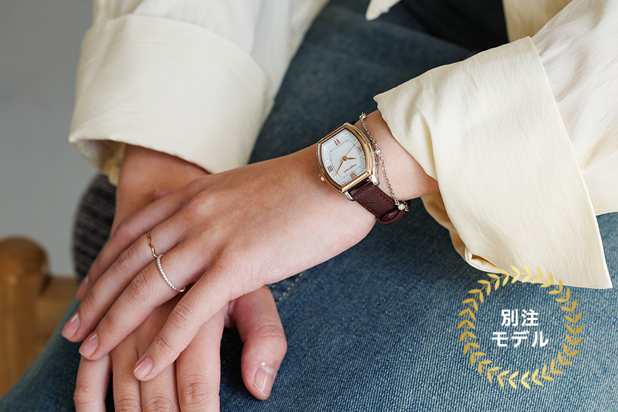 可愛らしさと大人っぽさを兼ね備えた、ギフトにぴったりなブレスレットセット。シルバーとピンクゴールドのコンビネーションカラーに白蝶貝のダイヤルがやわらかい印象を与えます。いつもよりもおしゃれをしたい特別な日は、ブレスレットを重ね付けして華やかさをプラス。