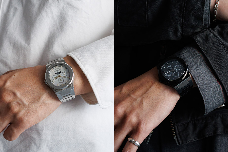 1970年代に人気を博したレーシングクロノグラフウォッチをモチーフにしたヴィンテージ感のあるデザイン。雰囲気のあるアイテムを投入して、トレンド感のある腕元へアップデート。