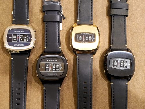 お次は“FUTURE FUNK(フューチャーファンク)”。70年代に流行したローター式時計を現代の技術をもって復活させた、ユニークウォッチです。