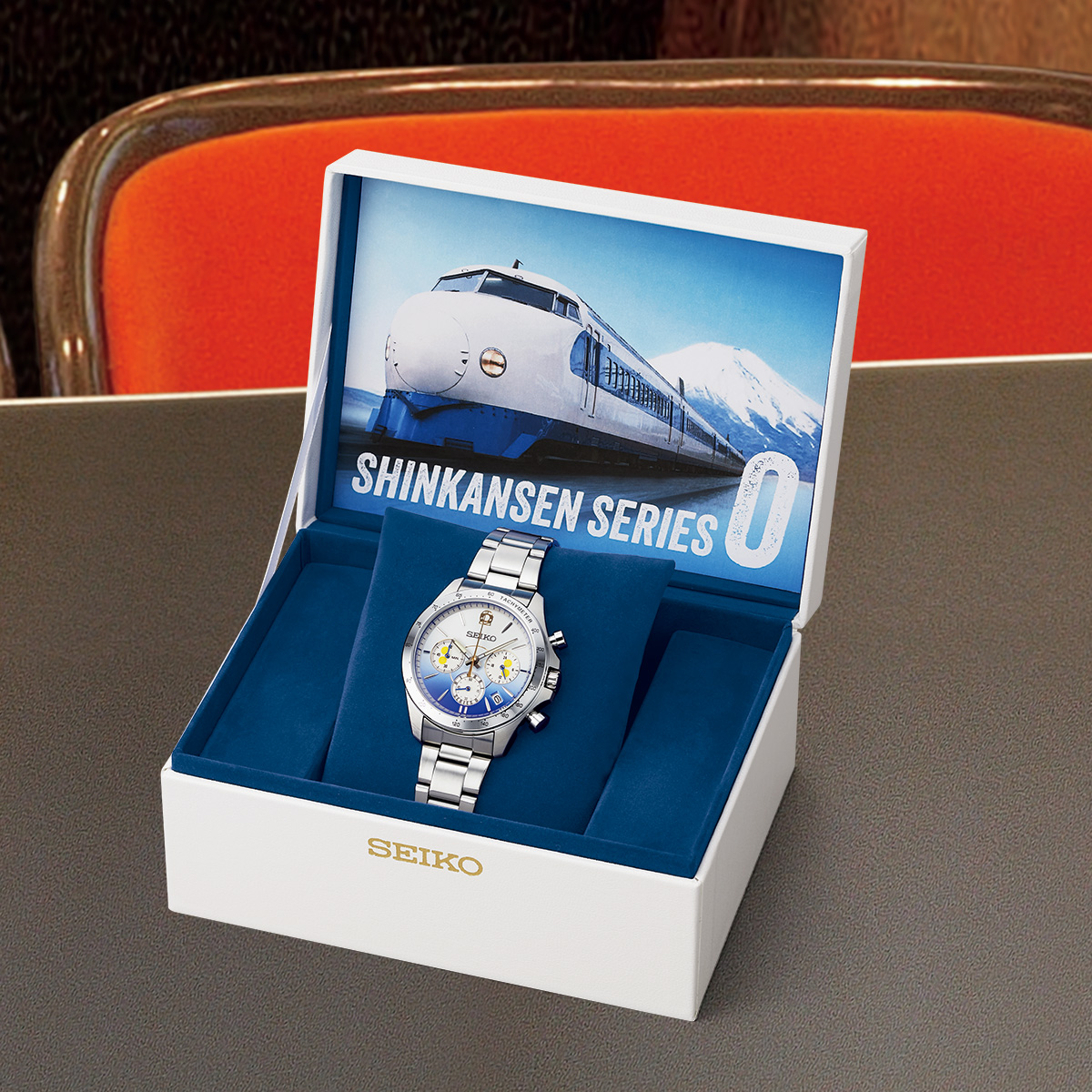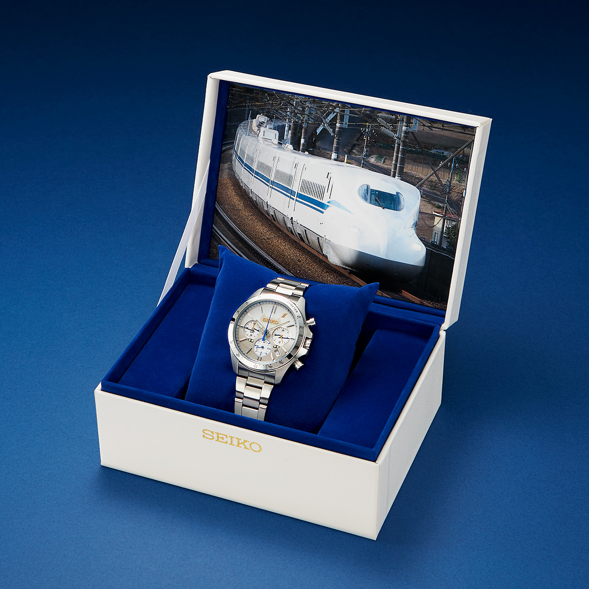2020年、最高を意味する「Supreme」のイニシャルSを冠して、颯爽とデビューを飾った東海道・山陽新幹線N700Sのぞみ。劇的な進化を遂げたその新世代の新幹線の運行開始1周年を記念して、セイコーよりハイスペックな腕時計が登場しました。美しく輝く車体のホワイトを基調に、ブルーを差し色に効かせたクールなデザインは、未来へ向かって疾走するN700Sのぞみをイメージ。強靭なステンレススチール製のボディには、高性能なクロノグラフ機構が搭載されました。