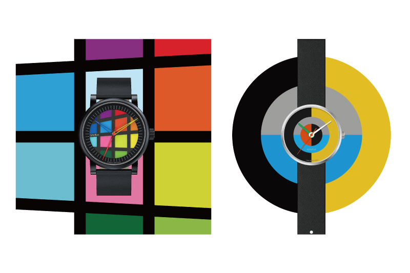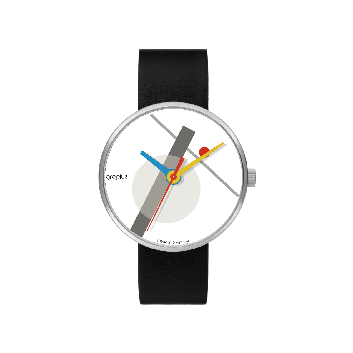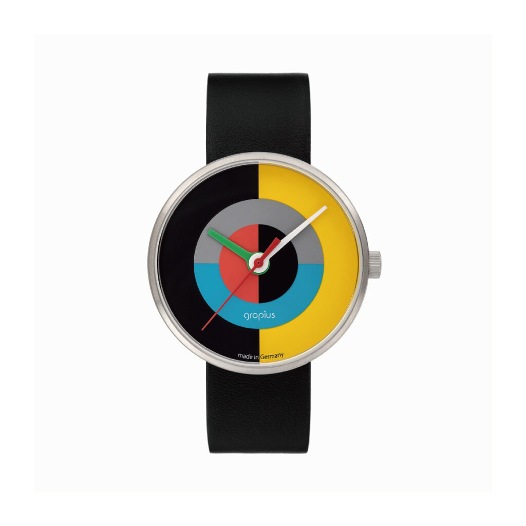 プロダクトデザイナーであるダニエル・エルトナーがデザインを手掛けるバウハウス・ヴァルター・グロピウス。時計のデザインは、バウハウスの設立者であり、初代校長でもあるヴァルター・グロピウスのデザイン様式を再解釈。三原色を基調とした鮮やかな色彩、グラフィックで表現しています。