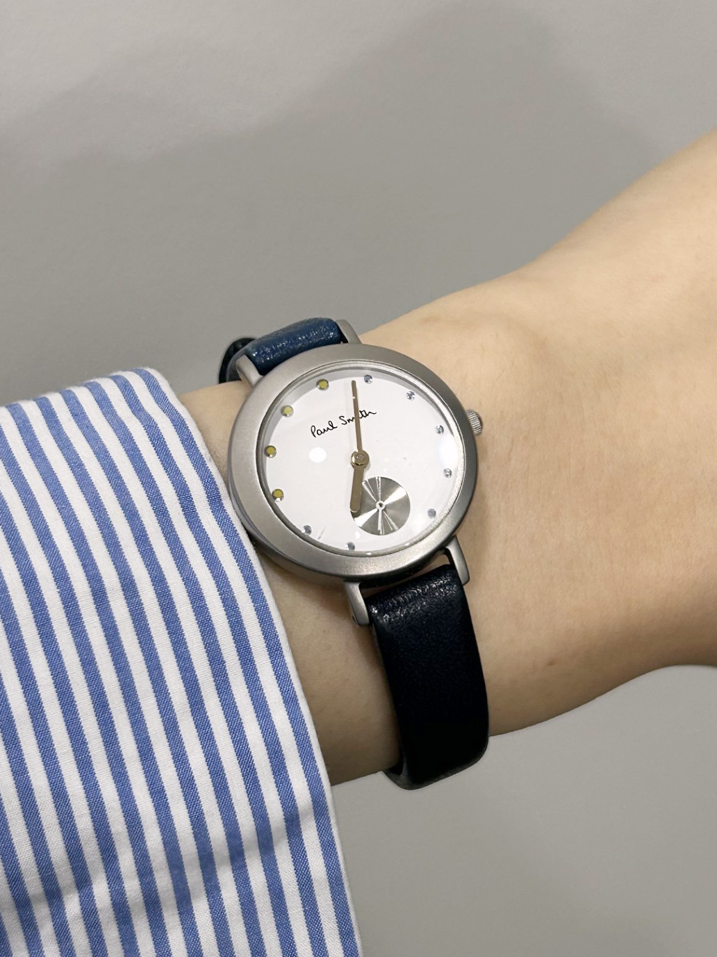 服の色に合わせてブルーのベルトを選びました。ベルトは6時側と12時側で違った色味なのがお気に入りポイントです!