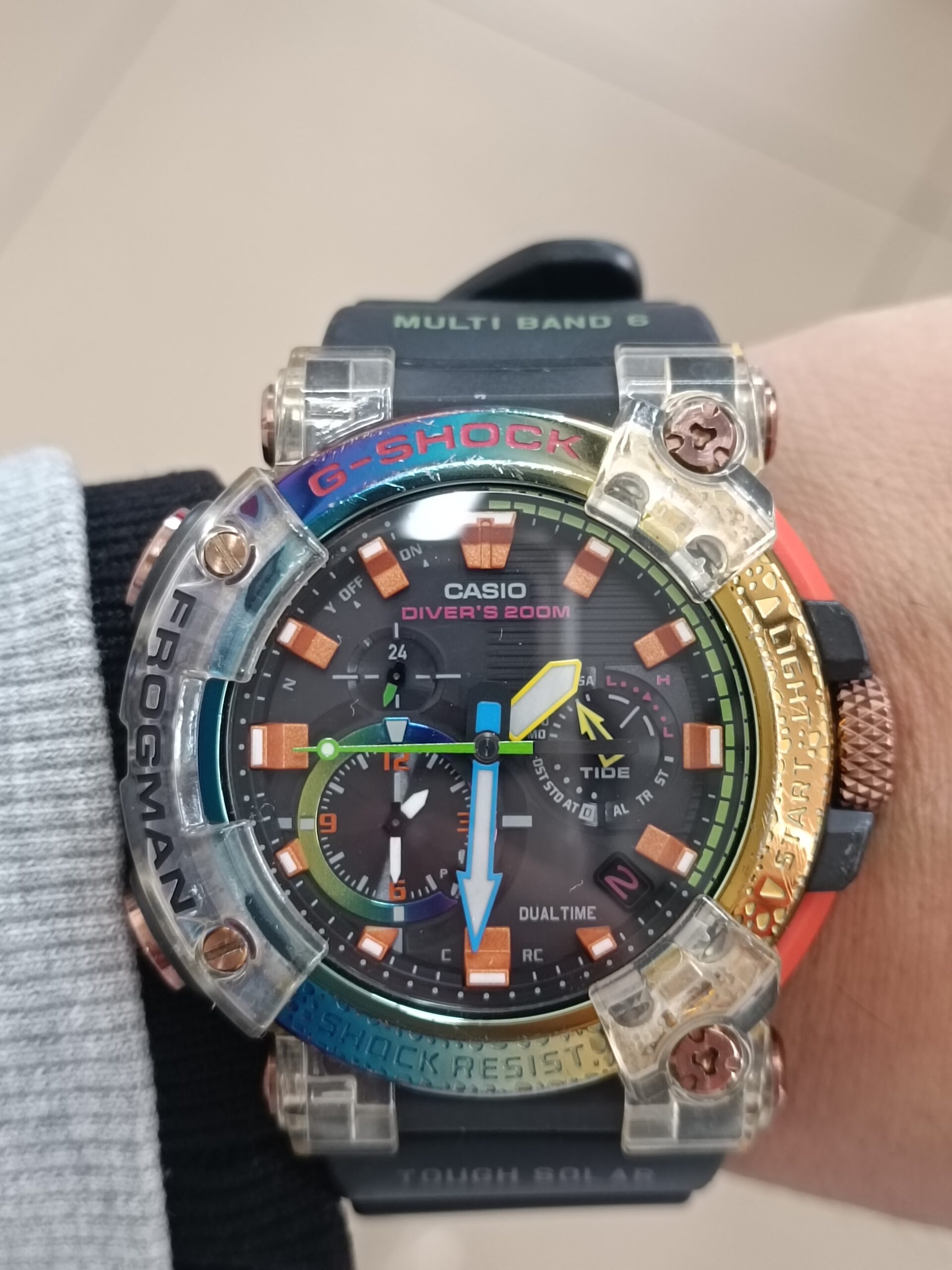 鮮やかな色合い、防水200M、ボリューム感があり、つけると自信が溢れる。